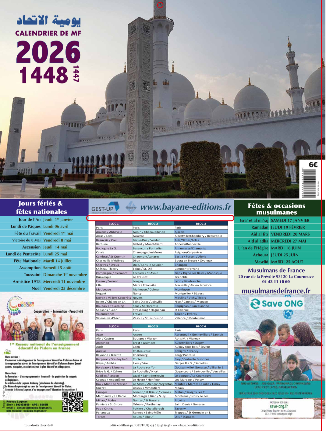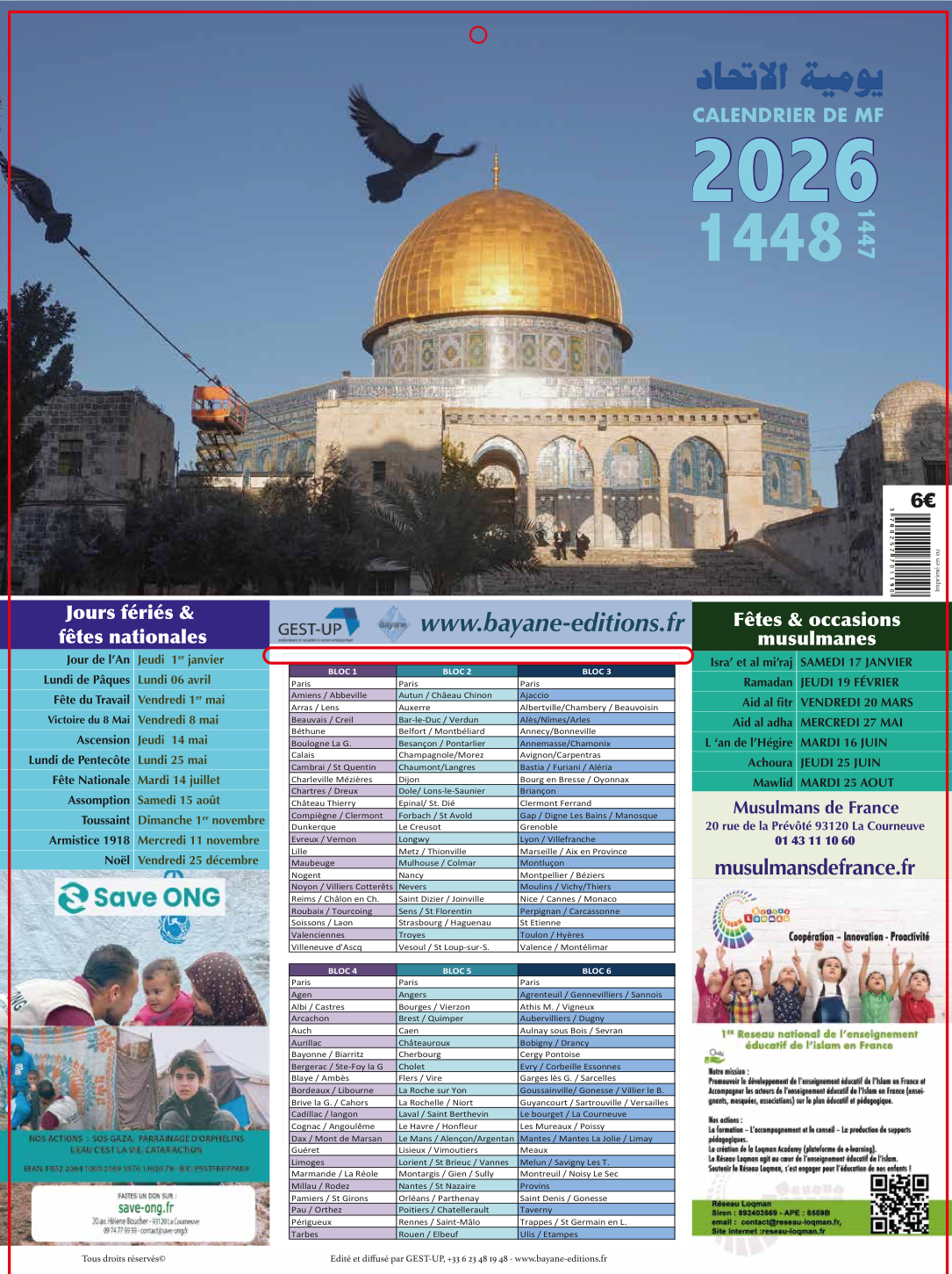 Calendrier de prière 20266,00€ TTC Ma Zone Choisir une option123456Effacer - quantité de Calendrier de prière 2026 — OU — + Ajouter au panier Ajouter à la liste d’envies Comparer UGS : ND Catégorie : calendrier Étiquette : calendrier Description Informations complémentaires Avis (0) Description Calendrier de prière, choisissez la zone qui vous concerne. Pour voir les villes, choisissez une zone. Informations complémentaires Poids 0,5 kg Zone 1, 2, 3, 4, 5, 6 Avis Il n’y a pas encore d’avis. Seuls les clients connectés ayant acheté ce produit ont la possibilité de laisser un avis.